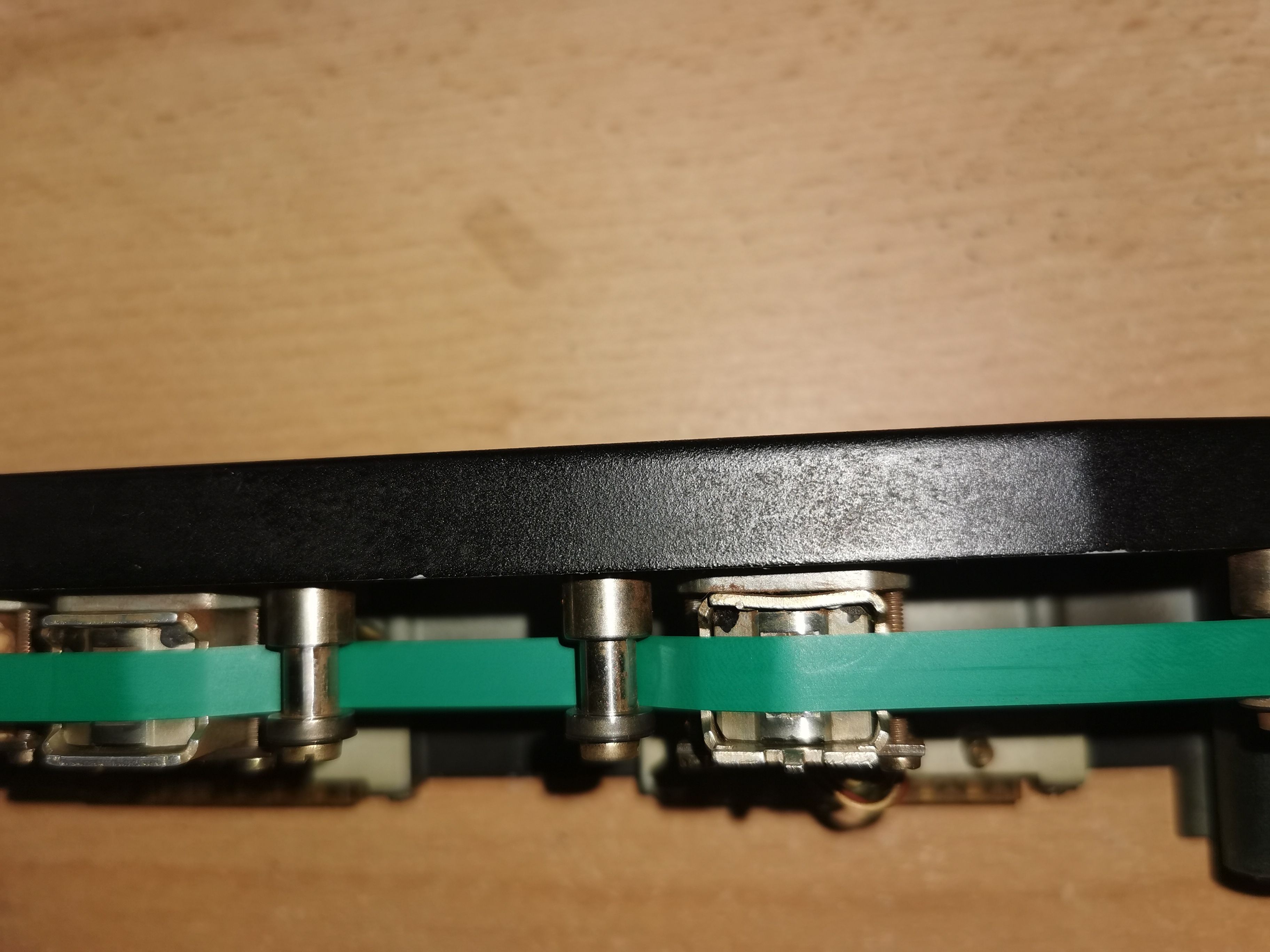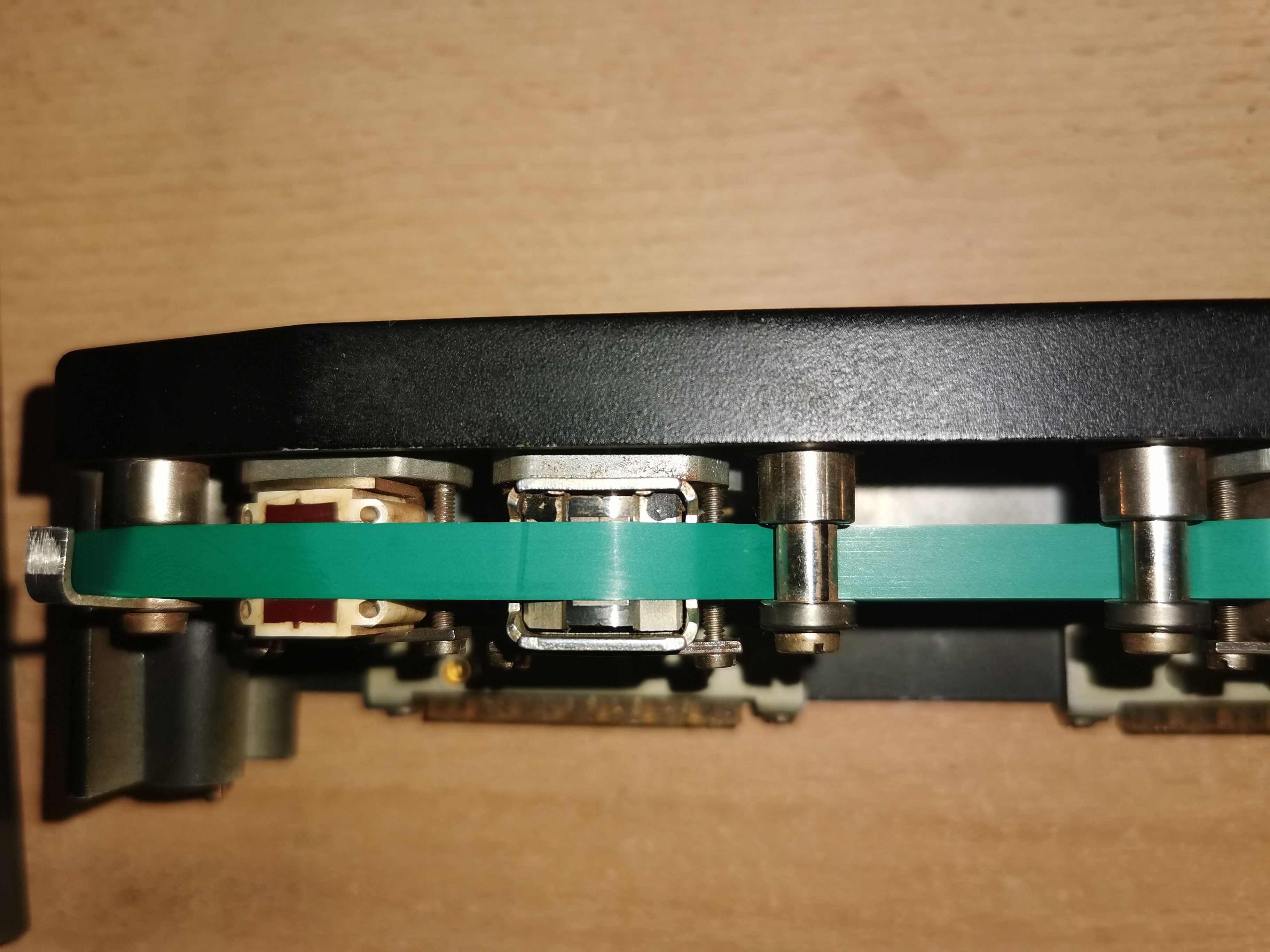 Ich habe das Band in die Führungen des ausgebauten Kopfträgers eingelegt, straff gezogen und die Stellung der Köpfe visuell geprüft - also einfach angesehen.