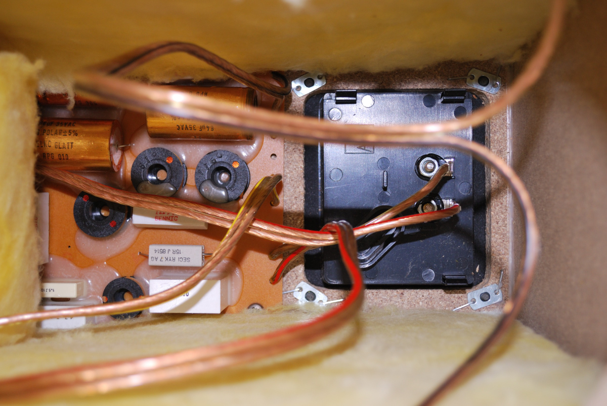 nachdem das für mich technisch mit den RM5 und RM6 Frequenzweichen geklärt ist, also wie ich dort die alten bipolaren Elkos möglichst gegen Folien-MKPs tausche, wird es nun quasi Zeit für die nächste Serie: die RM7. Von denen hatte ich bereits ein heiles Paar im Keller stehen, nun lief mir aber kürzlich ein weiteres Paar zu, bei dem die Mitteltöner hin sind. Während jene also mal zu Rainer müssen, habe ich etwas Zeit, auch hier über die Weichen nachzudenken. Dazu habe ich vorhin einmal eine Weiche ausgebaut. Siehe Bilder anbei.