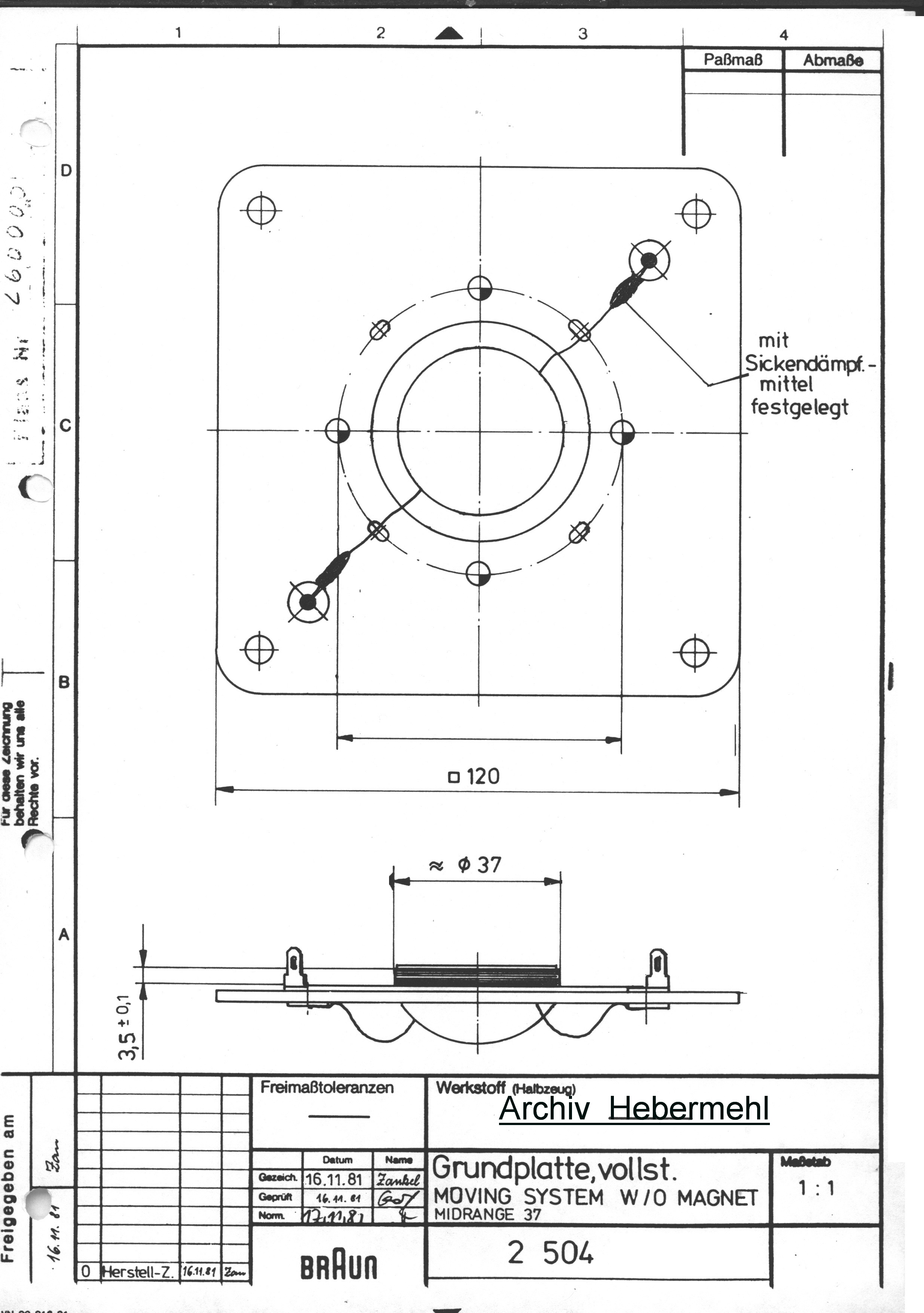 Vielen Dank für die technischen Zeichnungen Rainer. Wenn ich das richtig sehe, ist ein Umbau der Grundplatte aufgrund der unterschiedlichen Schwingspulengröße so ohne Weiteres nicht möglich. Dann muss ich wohl auf ein Ersatzchassis warten. Vielleicht hat einer der anderen Kollegen ja ein entsprechendes Chassis abzugeben.