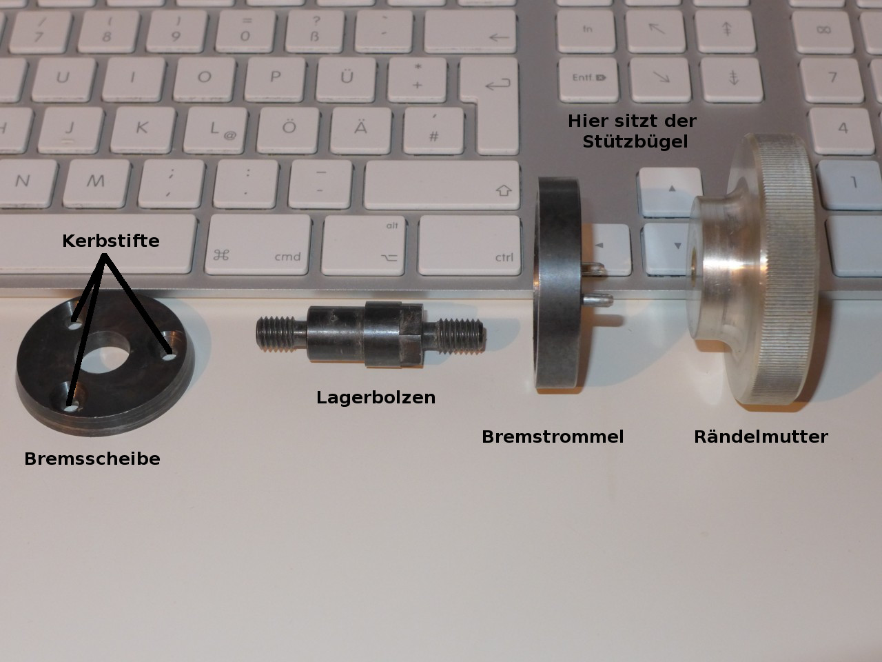 Ganz rechts ist dann die Rändelmutter zu sehen.