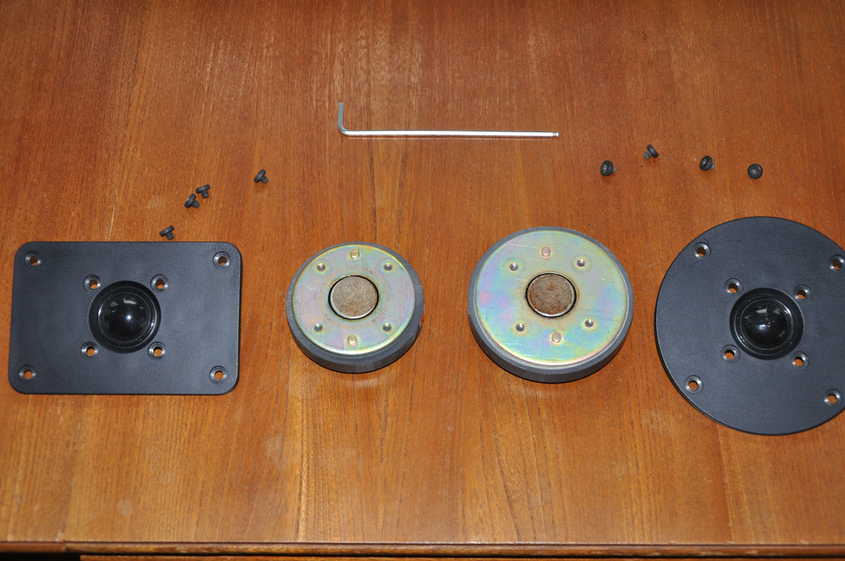 Kürzlich hatte ich die Chance, nach vielen Jahren ein zweites M12-Paar sehr günstig zu bekommen. Einziges erkennbares Manko waren ein ziemlich verbeultes LS-Gitter (das zweite habe ich bereits wieder gerichtet) - und eben ein defekter Hochtöner. Nun musste ich mich erst mal ein wenig mit Grundlagen beschäftigen, was ich bisher nie gemacht habe. Berichtigt mich also bitte, wenn im Folgenden etwas falsch ist.