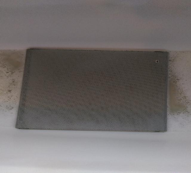 badewasser sehr heiss eingelassen und mit spülmittel das gitter eingeweicht.