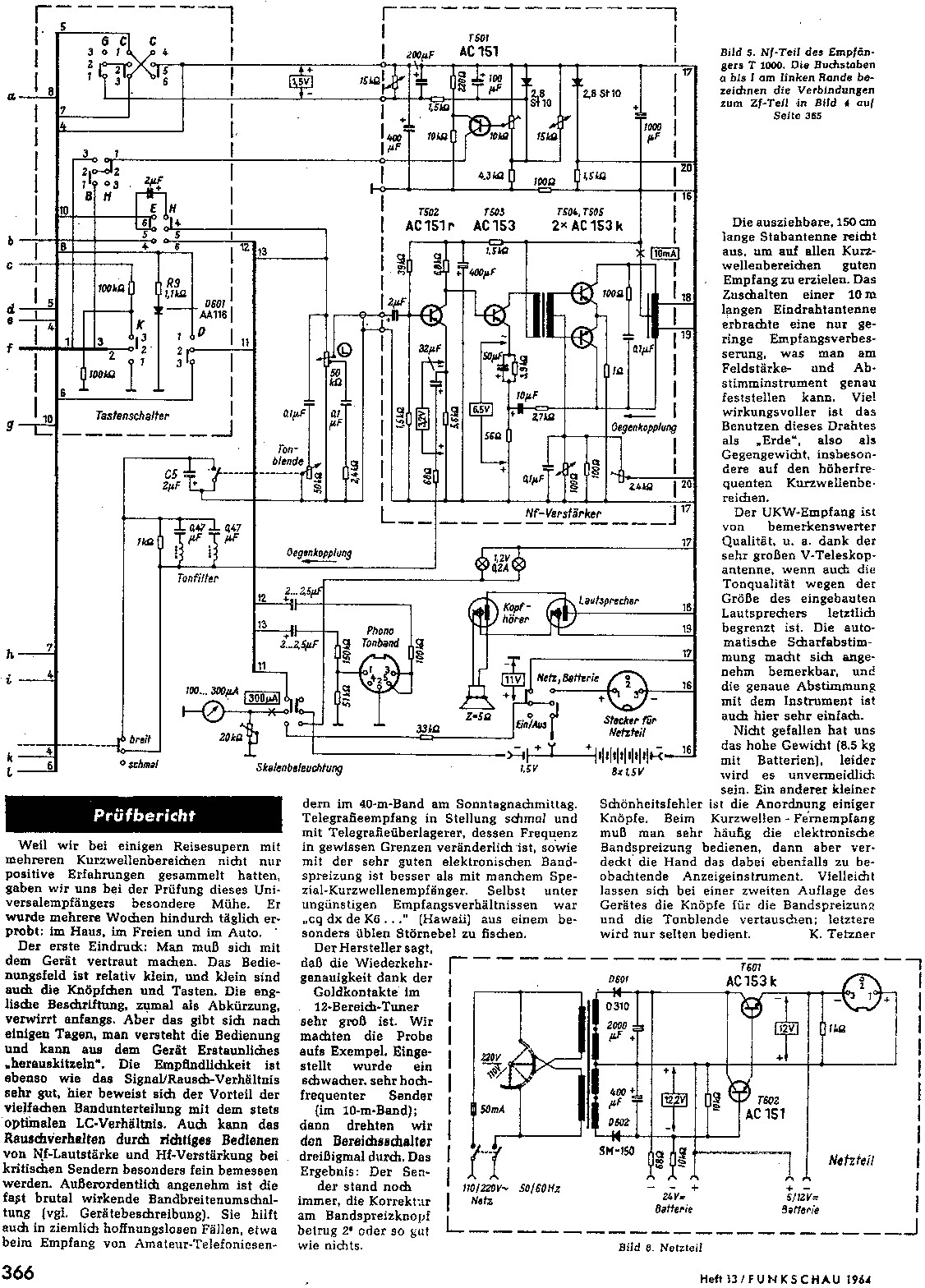 gerade erst habe ich bei "Radiomuseum.org" einen Geräte- und Prüfbericht über den Weltempfänger T1000 im Heft Nr. 13 aus dem Jahr 1964 entdeckt. Er wurde dankenswerterweise von Trev Levick hochgeladen und allen zur Verfügung gestellt.