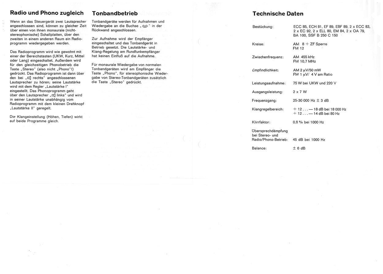 Was nicht funktioniert - oder ich nicht kapiere - ist die Stereowiedergabe, wenn ich ein Phonogeraet in den vorgesehenen 5pol Stecker stoepsele.