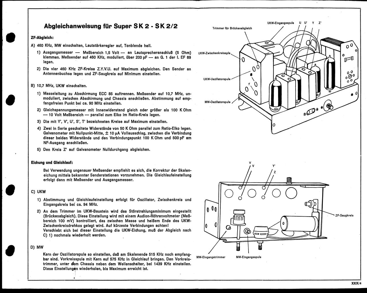 In der Anleitung ist von den Kreisen Y' V' U' S' T' die Rede, in der Zeichnung der Baugruppen gibt es aber nur U' V' Y' und Z', wobei letzterer für den Nullabgleich des Ratio-Elkos ist.