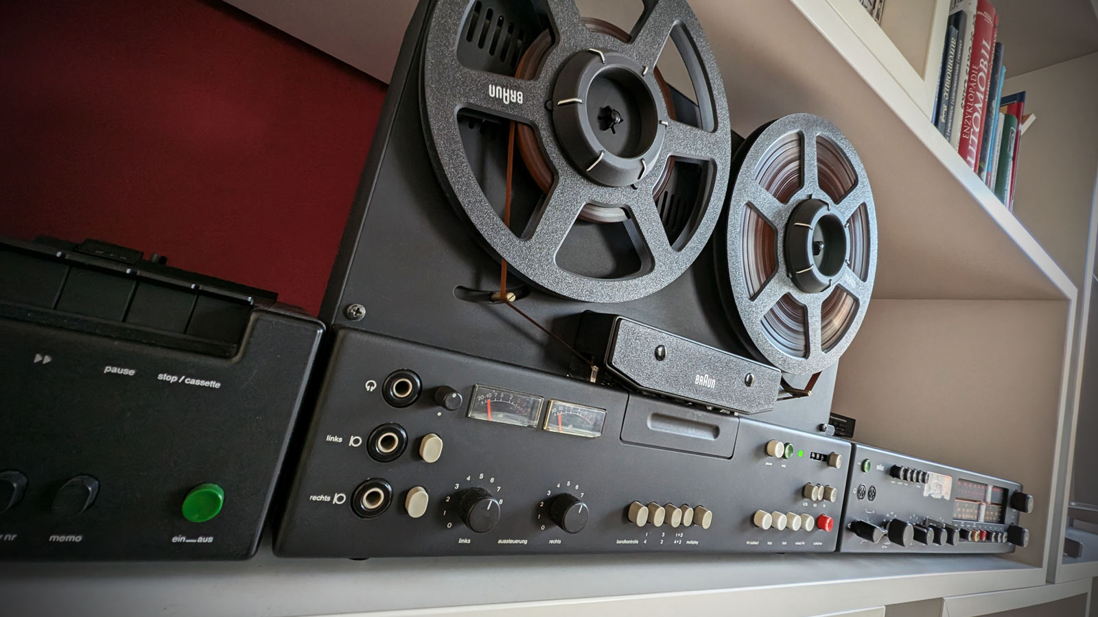 Das Schnittmuster auf dem Kopfträger war ja für dsa Schneiden von Bändern vorgesehen. Hat aber so wahrscheinlich nie jemand benutzt, sondern wie ich früher die BASF-Scheid- und klebebox benutzt.