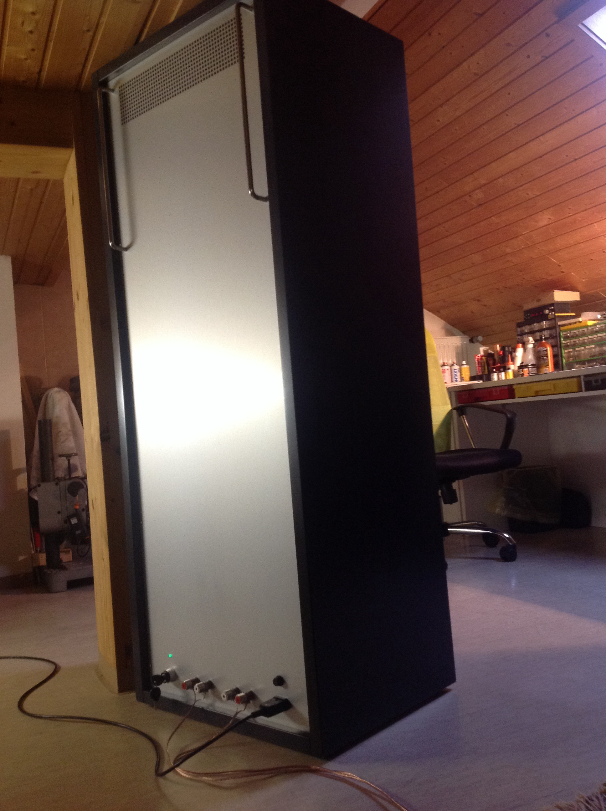 Sie bilden das Highlight der Anlage, es sind zwei CSV 13. Beide stehen zur besseren Kühlung ohne Gehäuse auf Alu-Winkeln. Nur beim unteren habe ich unten ein Alu-Gitter angebracht, damit man (z.B. Kinder) nicht von unten über den Schub an spannungsführende Teilen kommen können.