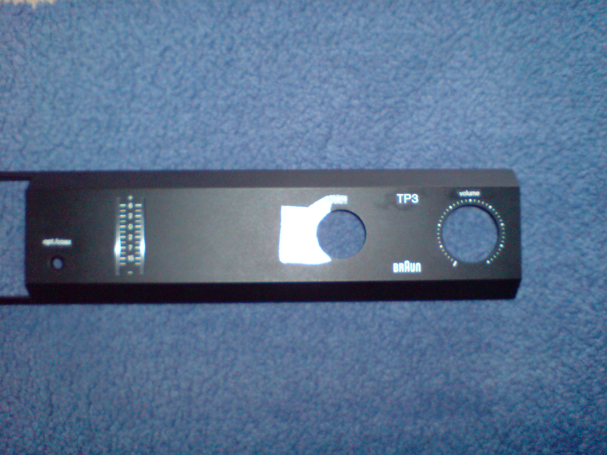 Für den Quellenwahlschalter wurde an der gleichen Position wie beim A2 ein Loch gebohrt, auch die Reihenfolge folgt der des A2 (tuner-phono-cd-tape-aux). Der Originalwahlschalter hat eine geriffelte Achse, aber ein Knebel vom A1 kam für mich nicht in Frage. Wahlschalter vom A2 sind nicht verfügbar und außerdem paßt die Schaftaufnahme nicht. Deswegen wurde einer abgeformt und nachgegossen. Für die Wellenaufnahme wurde das passende Stück des zweiteiligen Aussteuerungsknopf eines Atelier-Kasettenrecorders genommen und verdrehsicher eingeklebt.