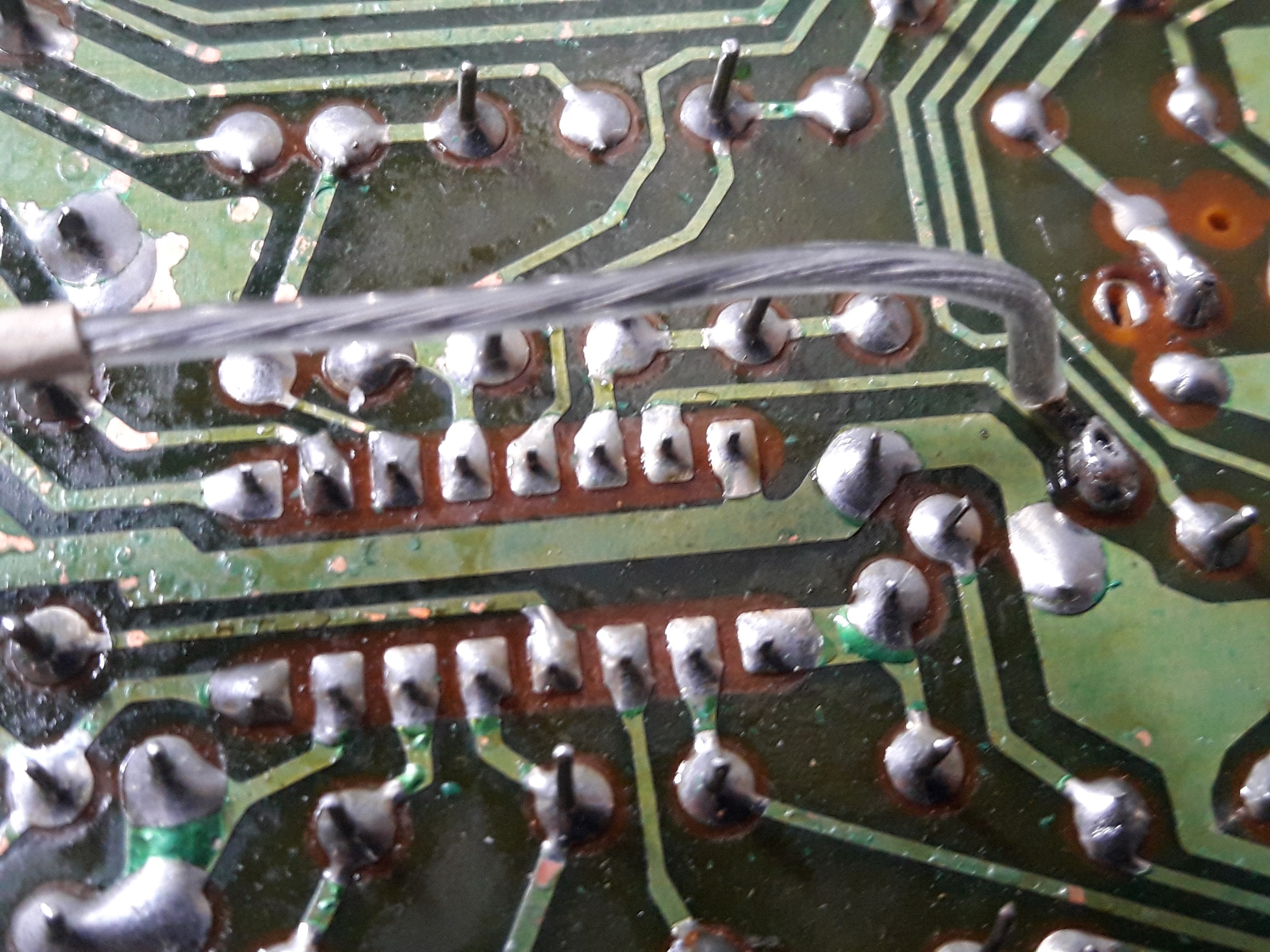 Das Kabel für die Stereoanzeige wird ebenfalls von unten an IC TCA 4500 an Pin 7 angelötet.