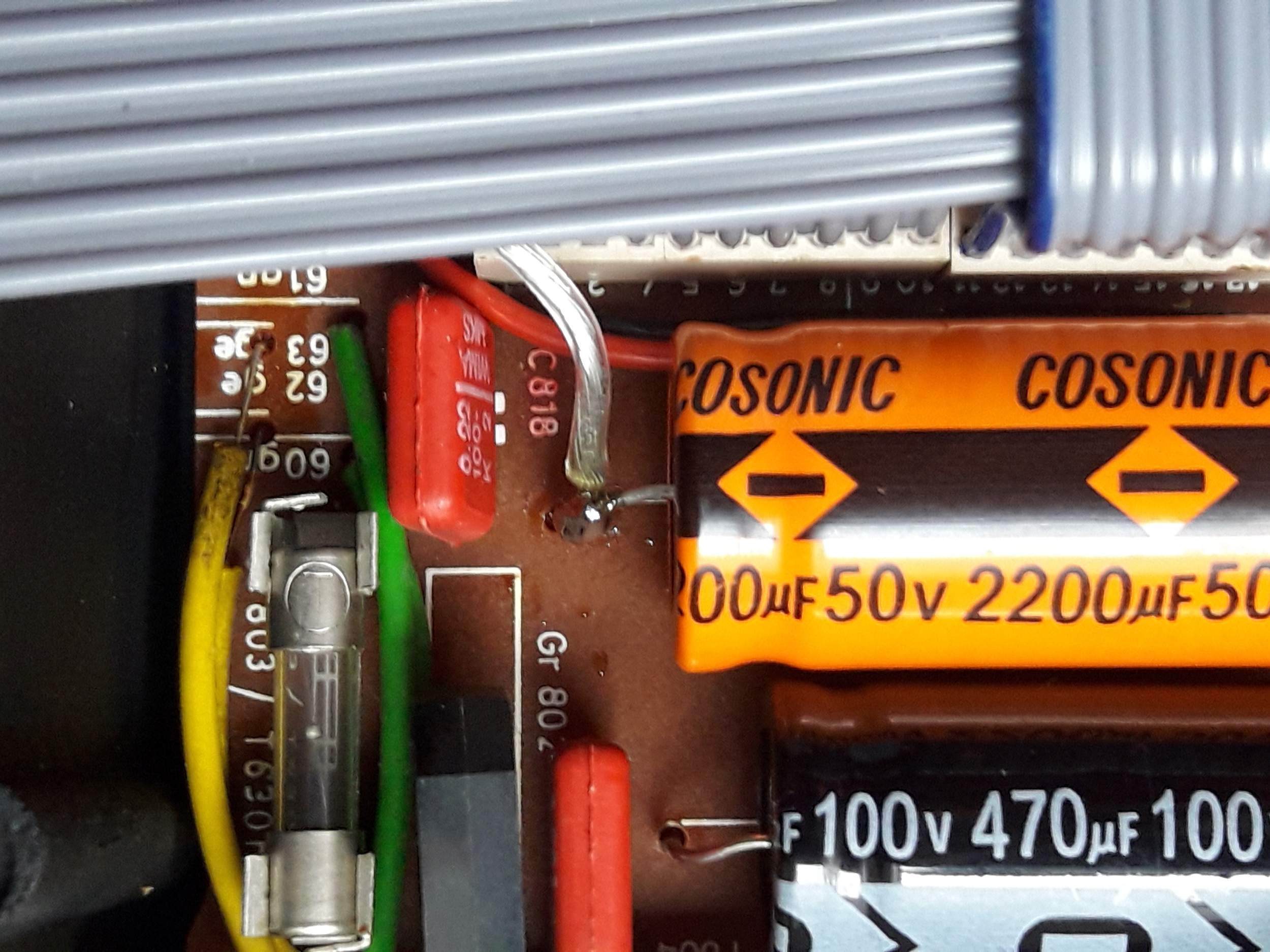 Die Betriebsspannung wird am C 818 abgenommen. Verdrahtung bis dorthin verlegt.