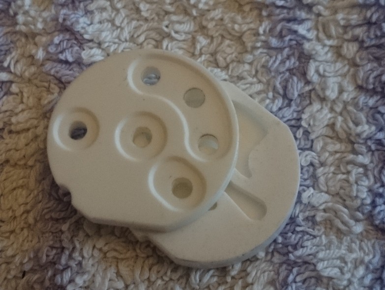 die beiden Keramikscheiben, nachdem ich sie auseinandergestemmt habe.