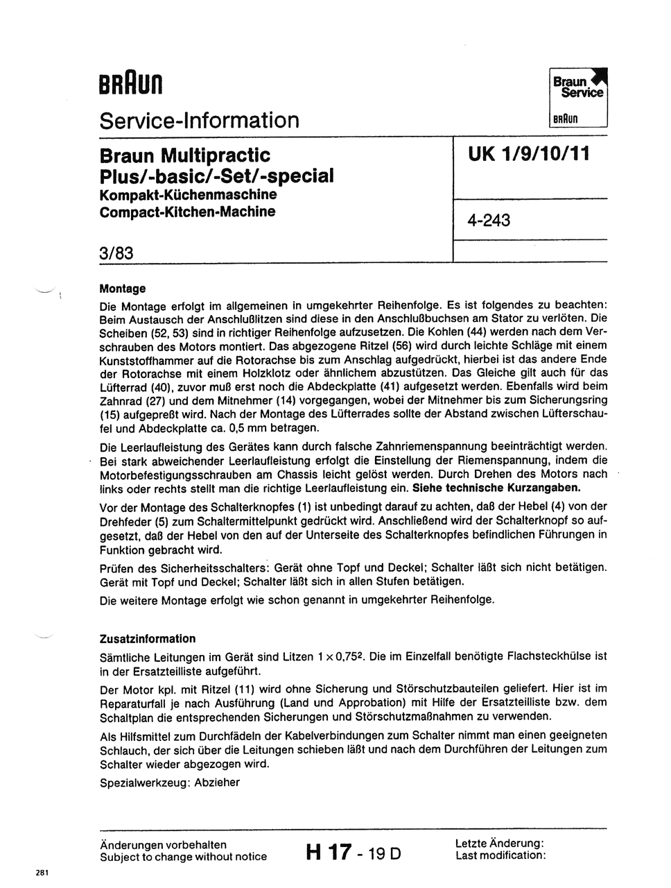 Re: Küchenmaschine Braun Modell 4243
