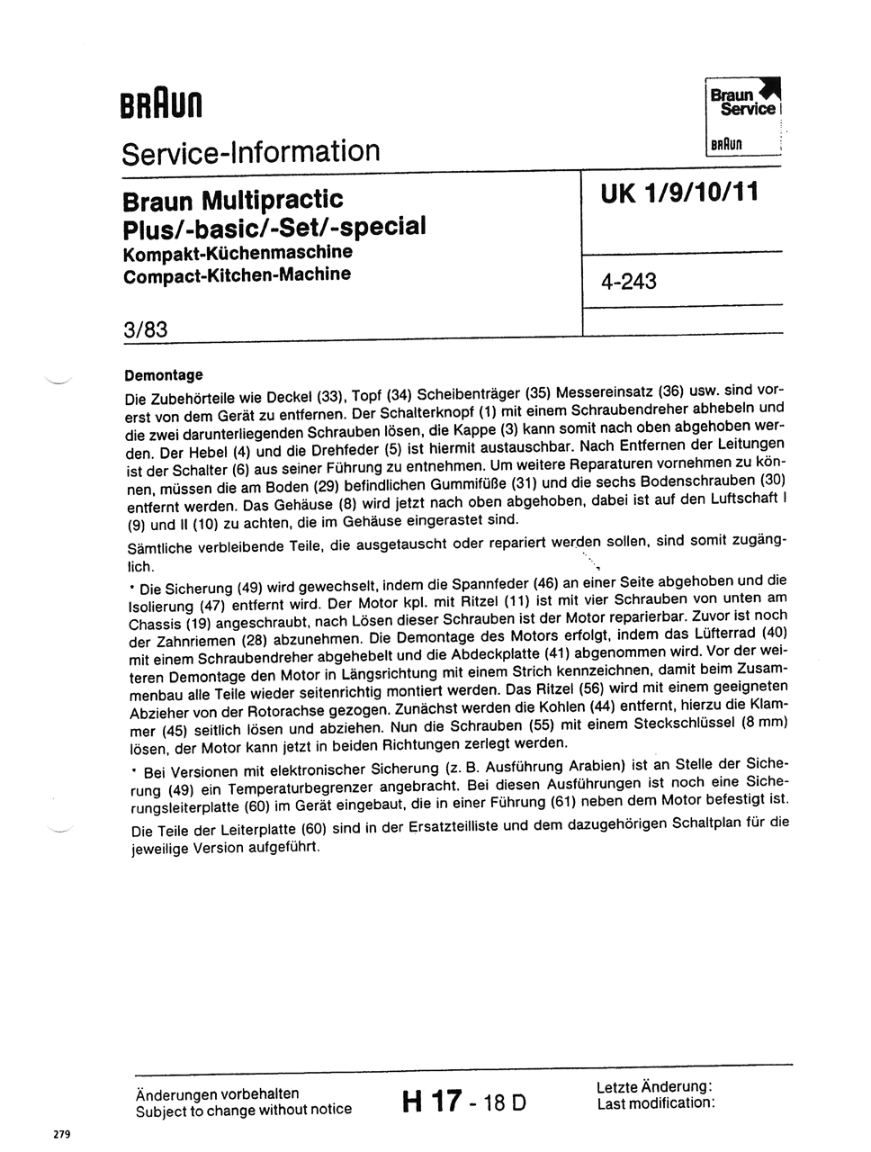 Küchenmaschine Braun Modell 4243