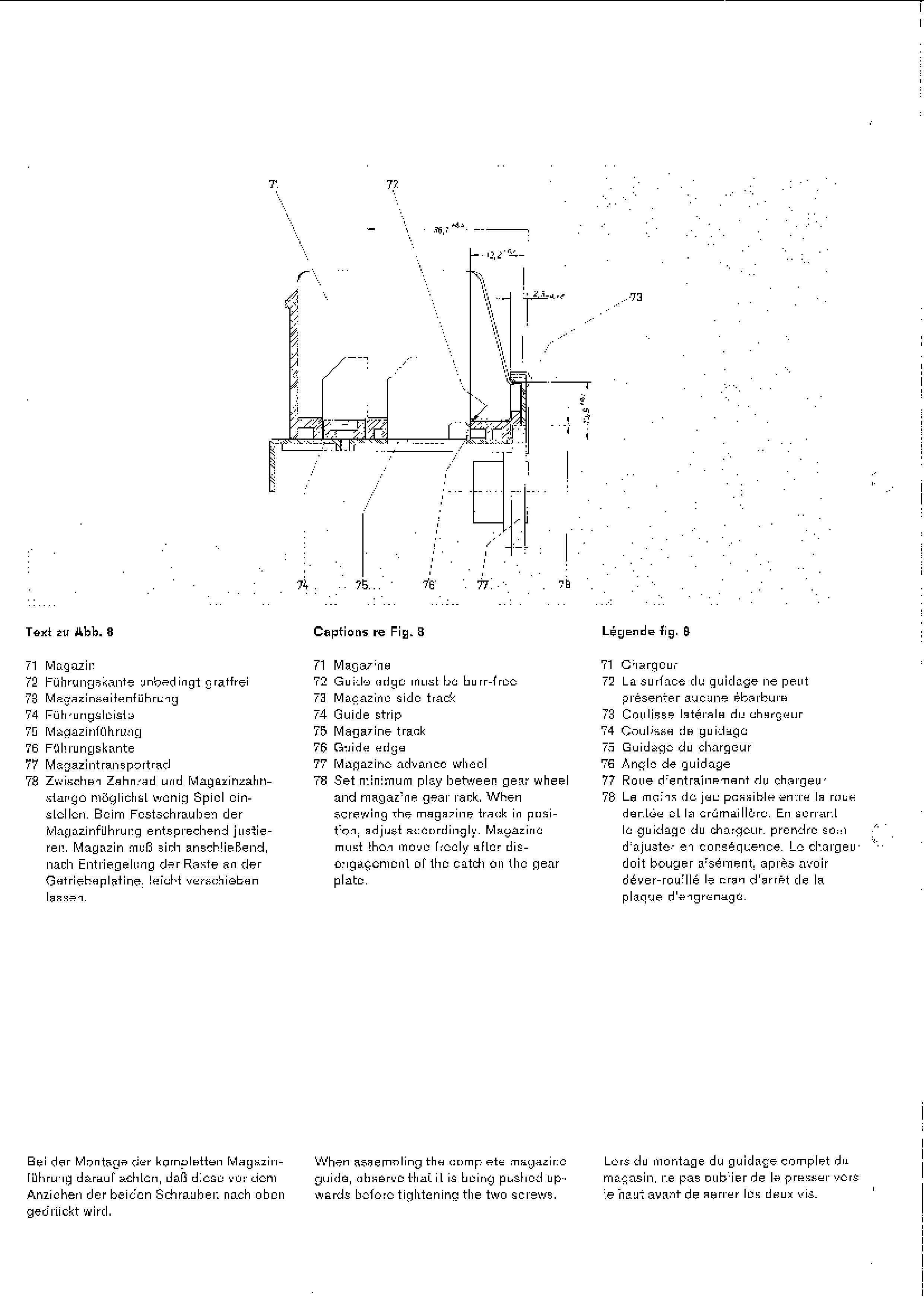 Es geht dabei um die Position der Magazinführung. Wenn er zu weit nach unten verschoben ist, klemmt das Diamagazin auch. Bitte überprüfe auch diese Möglichkeit nach der folgenden Anleitung. ... und viel Erfolg beim Einstellen