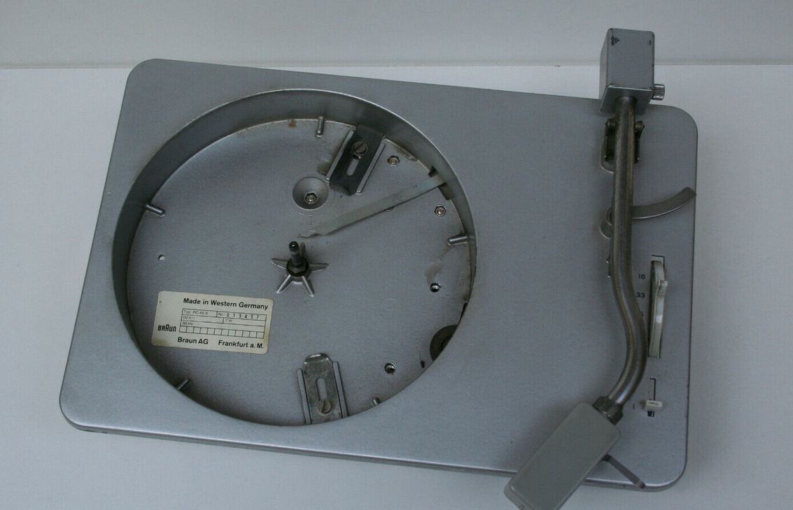 es handelt sich dabei um ein Einbauchassis, vermutlich aus einem Braun Audio 1. Es gab das gleiche Chassis zwar auch als stand-alone-Variante auf einem Kunststoffunterteil, aber das dort verwendete Chassis unterscheidet sich von Deinem durch einen zusätzlichen Spannungswähler links neben der Tonarmbasis: