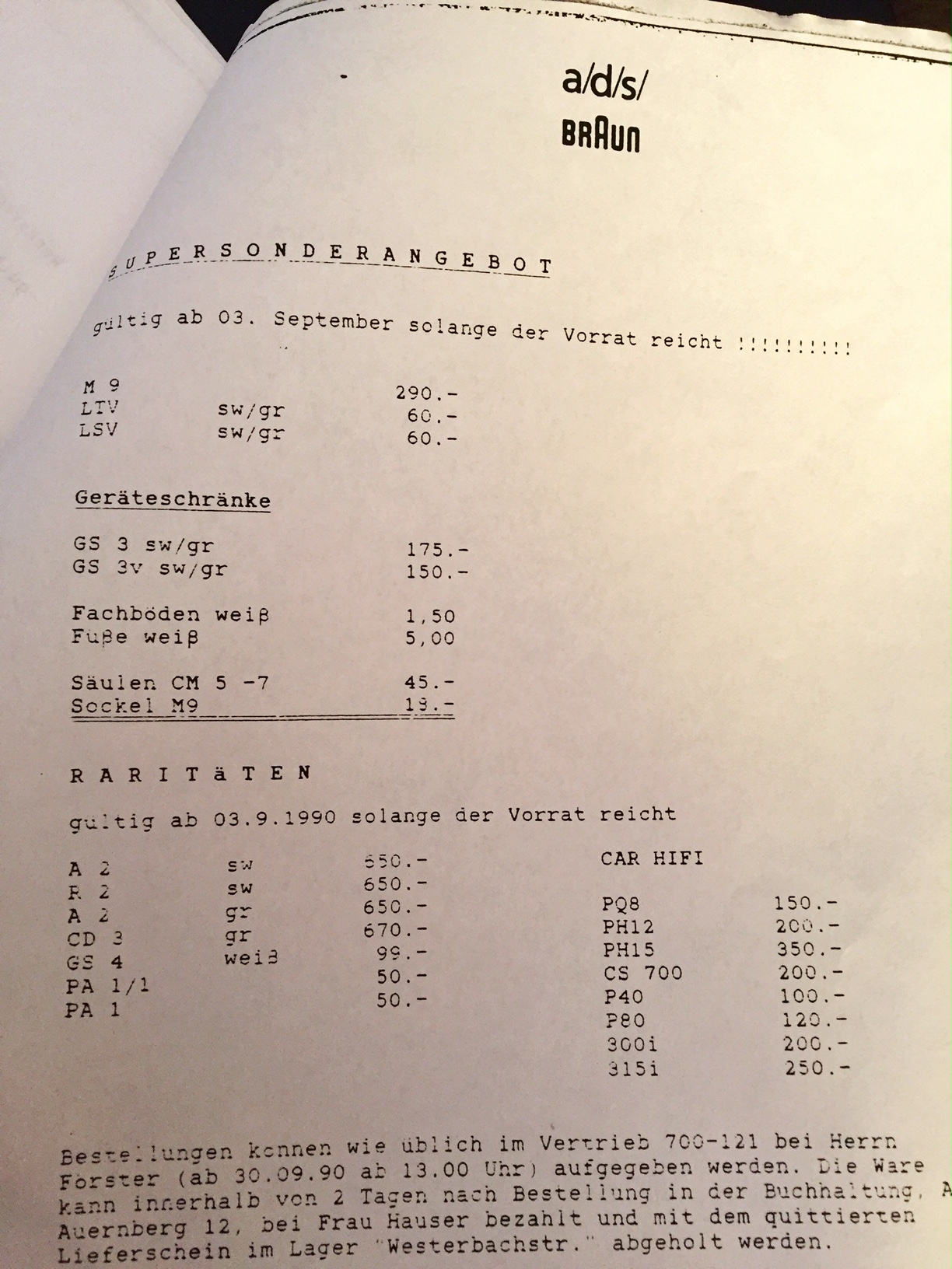 ich habe auch noch ein altes Schätzchen aus dem Fundus meines Vaters gefunden. Dier Werksverkaufpreisliste zum Abverkauf der Atelieranlage. Nur mal so