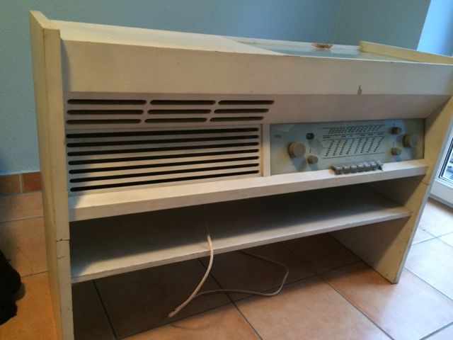 ich bin neu hier im Forum und sage erstmal "Hallo" an alle. Ich beherberge in meinem (trockenen) Keller seit langer Zeit die gute alte PK-G3 von Opa und werde mich jetzt wegen eines Umzuges trennen müssen. Das Radio ist funktionstüchtig, der Plattenspieler läuft nicht an. Der Gesamtzustand ist, wie auf den Bildern ersichtlich, restaurierungsbedürftig. Ich bitte euch um eine realistische Einschätzung, was ich für dieses Gerät verlangen kann und wo ich es am besten verkaufe (ebay, hier im Forum, örtliche Sammler, etc.).