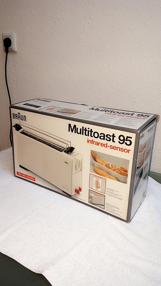 ich habe einen Braun Multitoaster HT 95 mit Original Karton. Der Toaster ist Schwarz und funktionsfähig. Mir ist aufgefallen dass man den Toaster nirgendwo zum Verkauf findet oder sonstiges. Deswegen wollte ich hier im Forum mal fragen was ihr mir dazu sagen könnt. Wie viel ist der Wert, ist der Toaster ein Sammlerstück etc.?