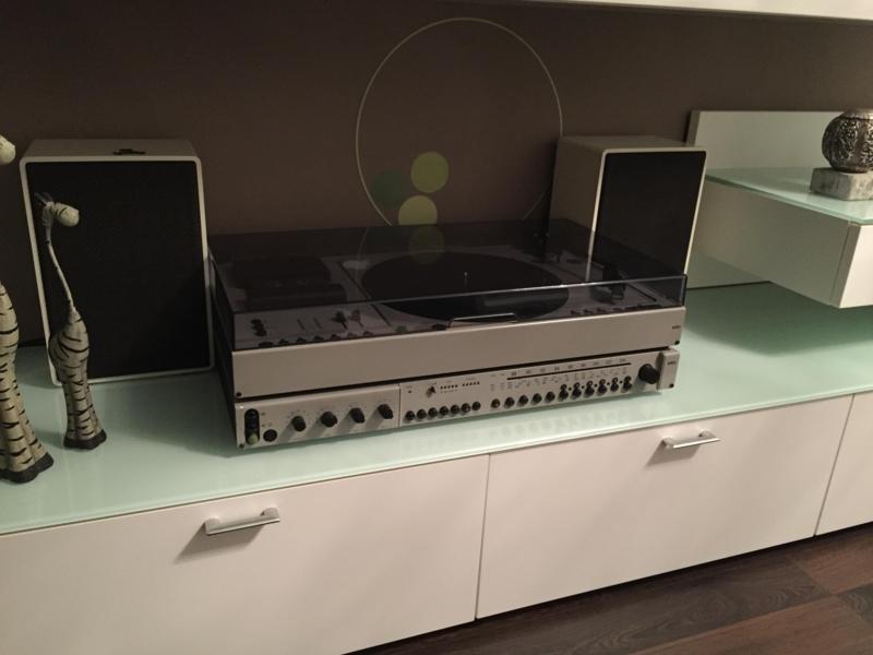 bin neu im braun forum,war jetzt ein jahr auf der suche nach einer stereoanlage mit plattenspieler und tape. habe mich auf eine b&o anlage versteift (wegen design) und auch eine beomaster 4600 inkl. orig. boxen erstanden. war nicht zufrieden tape deck nicht ordentlich funktioniert, radio gekracht, einzig der plattenspieler war in ordnung auch die boxen haben gekracht. wieder verkauft. letzte woche stiieß ich dann auf die braun komponenten ra1 und pc1 und war vom design begeistert. angerufen, hingefahren gekauft. gerät ist äußerlich in topzustand, kein knacksen, weder plattenspieler noch tape deck oder radio, vorbesitzer hat die anlage 1981 erworben und immer pfleglich behandelt, alle papiere und beschreibungen inkl. schaltplan vorhanden sogar die platten für die radiosender die man umstecken kann sind dabei. klang gut, et hat sie ohne boxen eingestellt mir aber dann weiße saba k35 dazugegeben. klang ok, kann man immer noch ändern. weiß jemand welche boxen bei diesem system dabei waren oder genommen wurden.