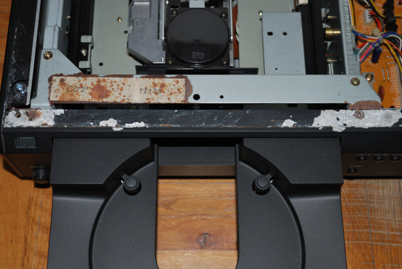 Dann ein Blick auf den CD2. So sah der u.a. innen aus: Ziemlich dreckig - keine Ahnung, wie man es hinbekommt, dass ein Braun-Gerät innen so rostet und gammelt.