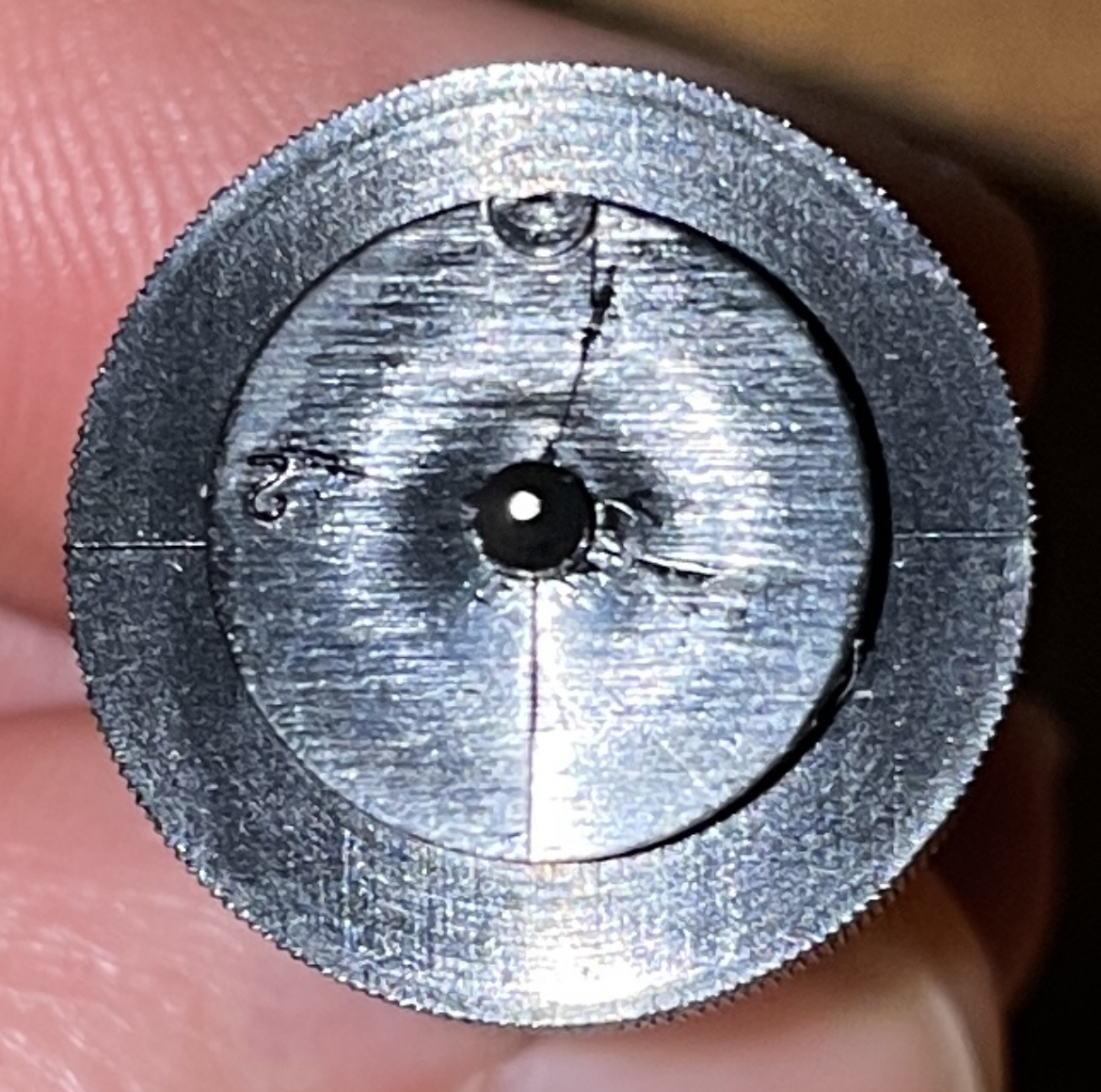 Ja und was sehe ich da? Die Antriebs-Reibscheibe hat sich von der Achse gelöst. Unter der Lupe sah ich dann auch warum.