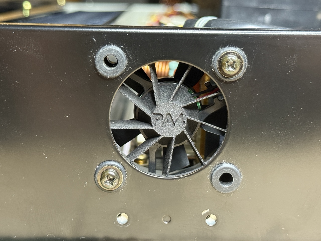 Um den neuen an den Look des originalen Lüfter zur Außenseite hin anzugleichen, setze ich diese 6mm breite, 3D-gedruckte Blende davor.