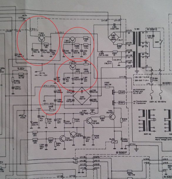 16V an T801 und 13V an T803. Ich habe einen restauriert, da war dann außer einem Ic leider auch noch fast alle 8 Transistoren im Vorfeld
