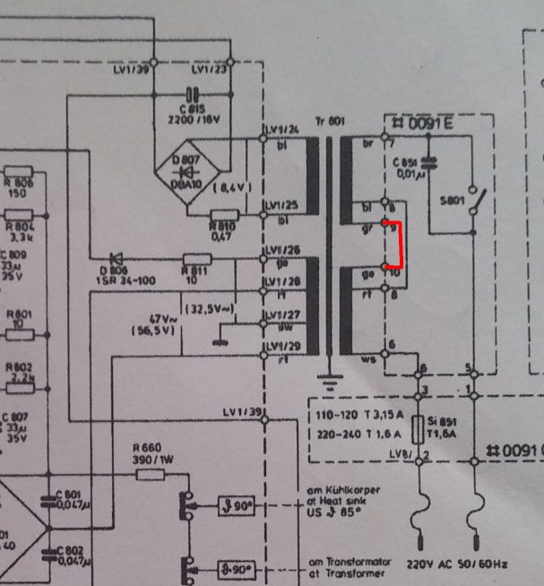 im Leerlauf auf über 50V zu kommen. Das ist aber schon der Grenzwert für die verbauten Siebelkos.... Ich habe daher bislang alle Geräte auf 240V Betrieb umgelötet. Geht ganz einfach. Laut Schaltplan entweder eine Brücke tauschen, oder nur 2 Leitungen tauschen.