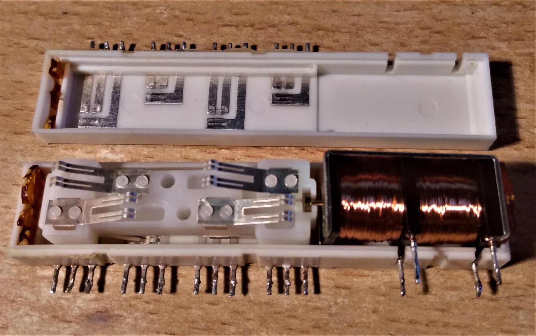 1. Ich vermute das Relais (Alps 082-) lässt sich Öffnen indem man die Laschen auf der Unterseite frei lötet?