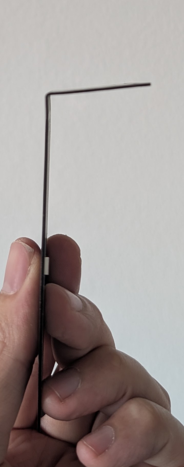 Beschreibung: das abgewinkelte Blech hat einen Winkel deutlich größer als 90 Grad.
