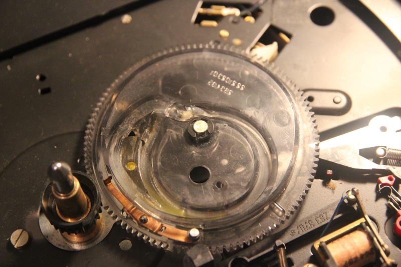 Im ersten Moment dachte ich, dass das Blockieren verschwunden wäre. Dreh ich den Plattenspieler aber in die richtige Position blockiert das große Zahnrad wie gehabt.