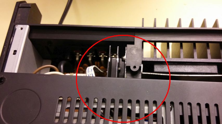 Ich habe den Transistor T802 in den hinteren Teil des Gehäuses verlegt. Mit großem Kühlkörper unter die Lüftungsschlitze.