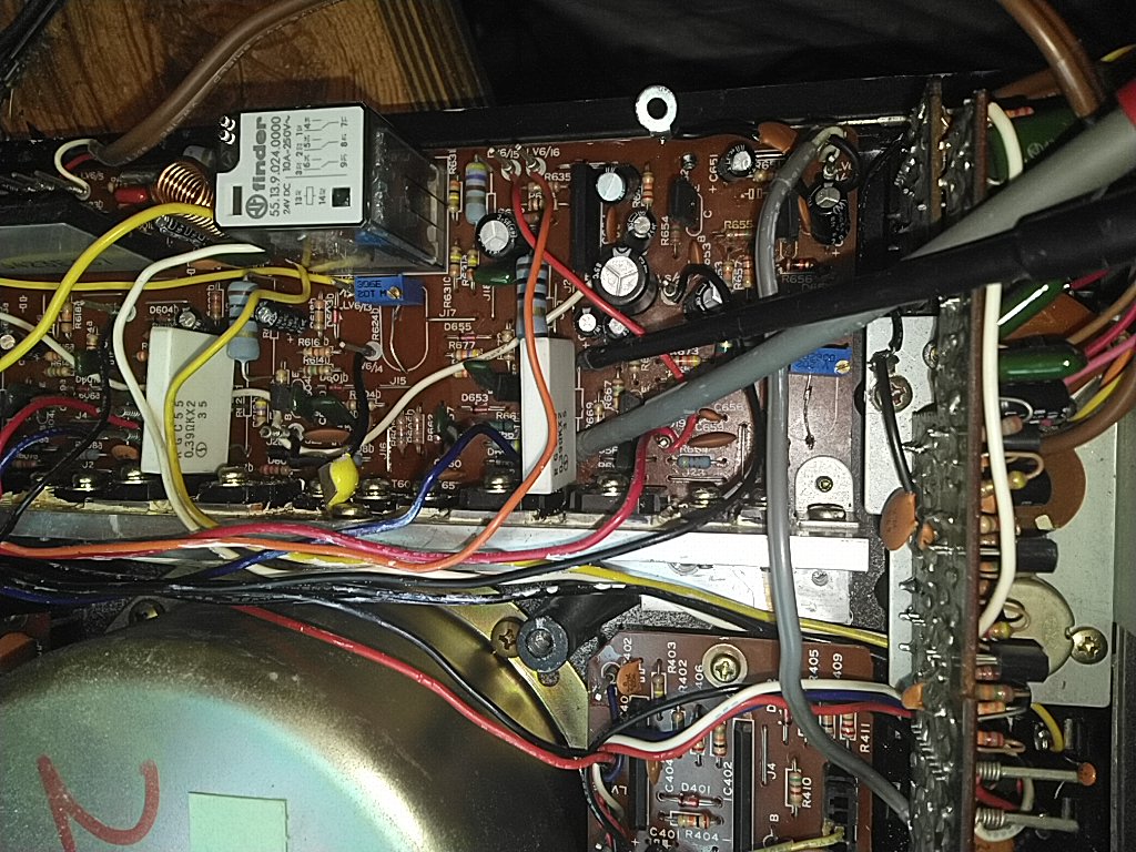 Was interesannt ist das es kaum eine kalte Lötstelle gibt und sich der Amp in einem super Zustand befindet. Profilaktisch werden aber trotzdem das LS-Relais (Finder, gab es vor ein paar Jahren noch neu) und die kleinen Netzelkos, Spannungsregler (7815 & 7915) und Gleichrichter getauscht, die dicken Elkos habe ich getestet und sie lagen super in den Werten und dürfen somit bleiben. Danach geht es in den Test ob die Spannungen alle passen und ob der Ruhestrom eingestellt werden muss, hierzu werden dann kleich Spindeltrimmer stendiert.