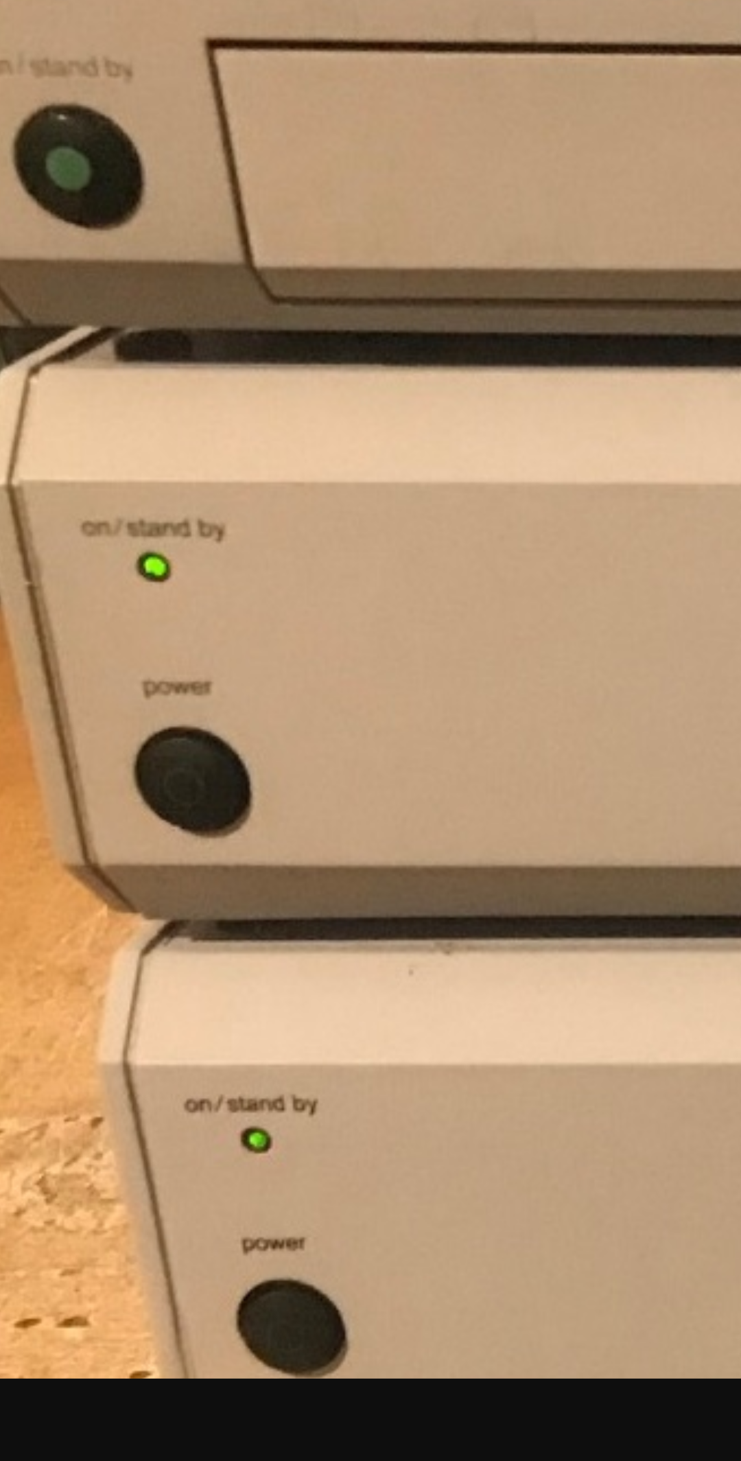 Leider hat die Toblerone eine andere Farbe als die Front selbst: Bekommen die Powertaster der PA's noch neue grüne Ringe?