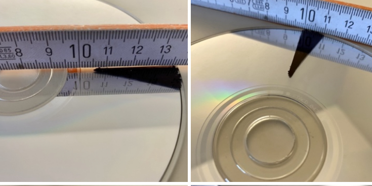 (Zerkratzte CD funktioniert nicht, weil die Empfänger den Kratzer nicht sehen können da der Focus auf die Oberseite der CD ausgerichtet ist)