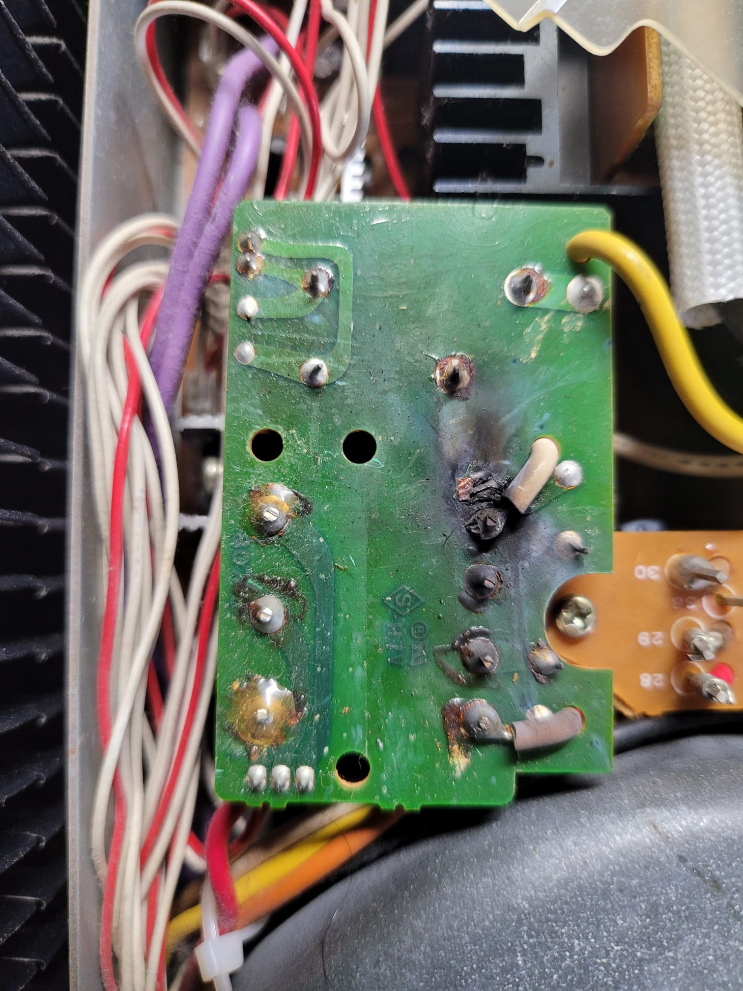 die Ursache wird wohl der darunter positionierte Standby Trafo gewesen sein, der enorm heiß geworden ist.
