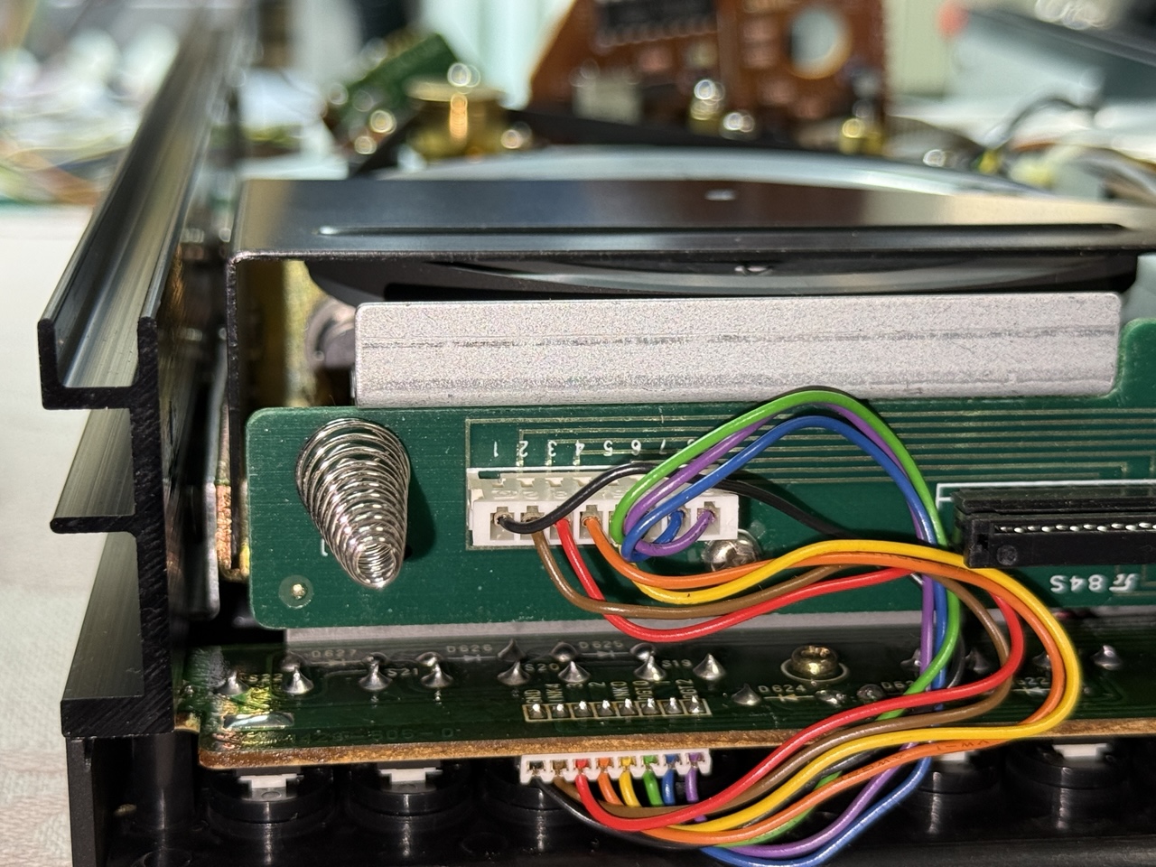 Die Anleitung unter "Atelier-Reihe wichtig" hatte ich studiert. Leider musste ich zum Entfernen besagter teerartiger Masse doch mehr Teile entfernen, um die Schwungmasse vom Capstan auszubauen.