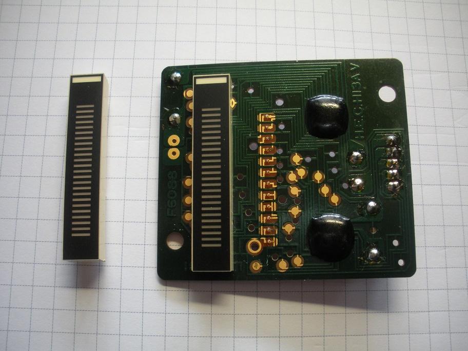 Der Fehler liegt aber definitiv an der Platine, hab die Kabel 1 und 5 umgelötet, ging trotzdem nur die linke Seite. Die Lämpchen sind auch in Ordnung, irgend etwas ist unter dem schwarzen Kaugummi, das wohl ne Macke hat. Ansonsten ist auf der Platine ausser 2 150k Widerständen nichts drauf. Gruß