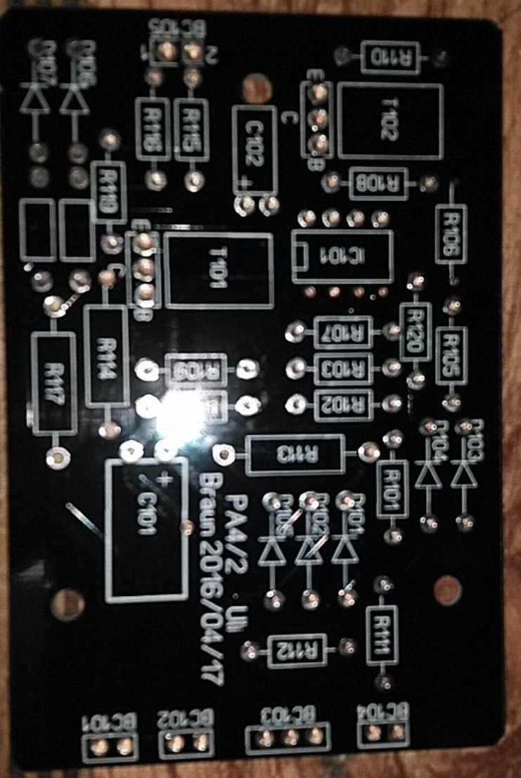 -> Ich hatte eine PA4/2 mit Ruhestrom- und Lüfter Umbau, bei der war die Platine unterhalb des R113 fast durchgebrannt. Oder den Wiederstand etwas höher setzen.