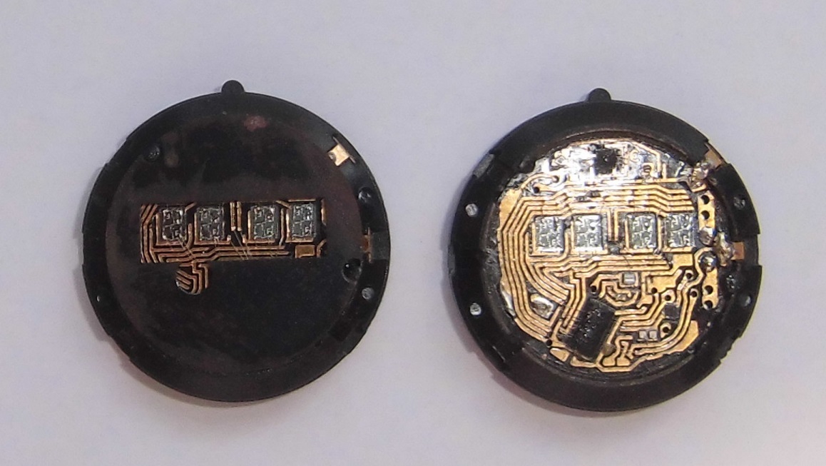 Man ist dann schnell auf stromsparender VFC Displays umgestiegen. Dann kamen die ersten Anzeigen als LCD raus. Man konnte vermutlich nicht die höhere Spannung für die VFC's aus den Knopfzellen gewinnen (meist >30V) und die LED Anzeigen waren echte Stromfresser.