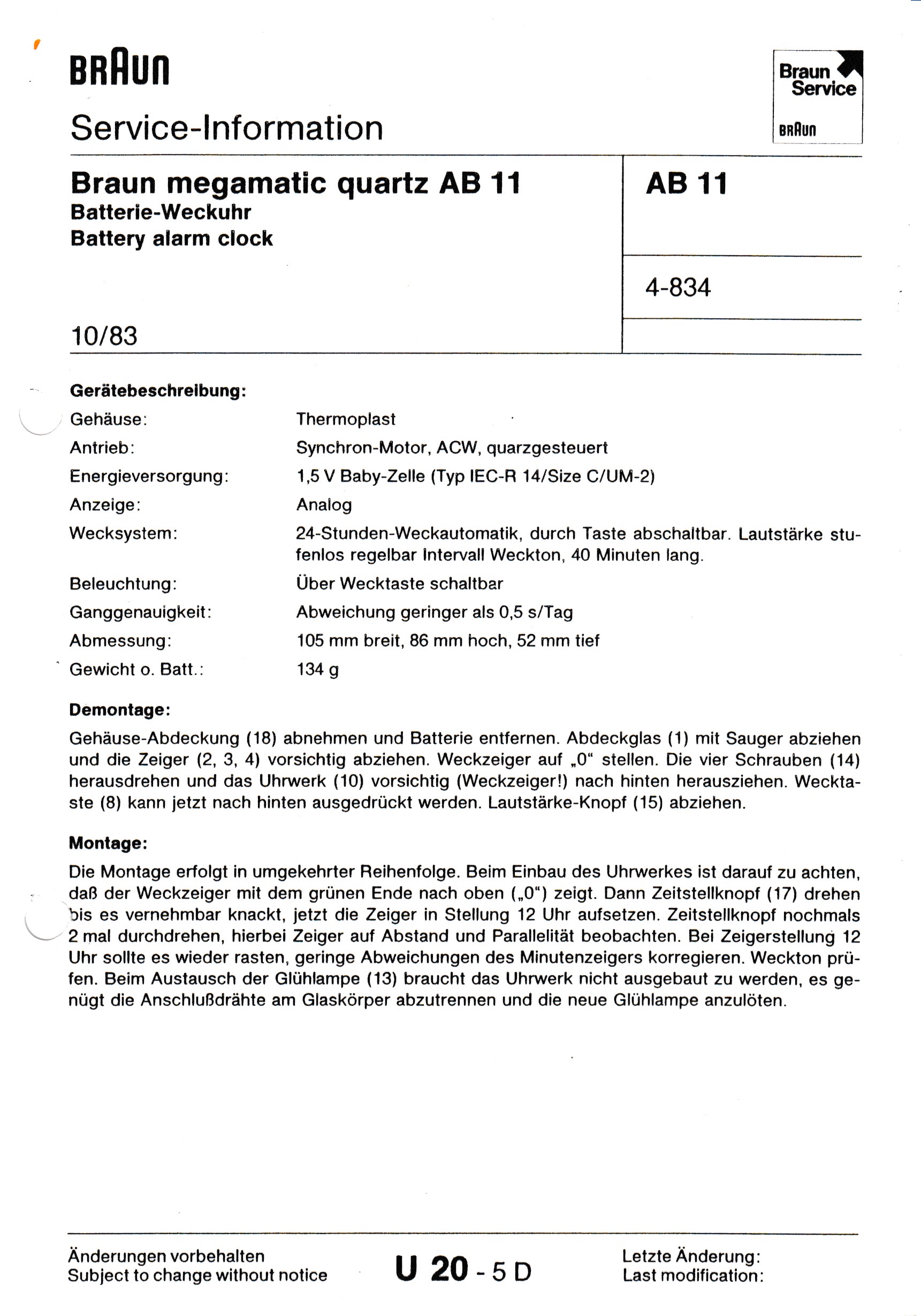 der oldie braun megamatic quartz AB 11 (4834) läuft wieder.