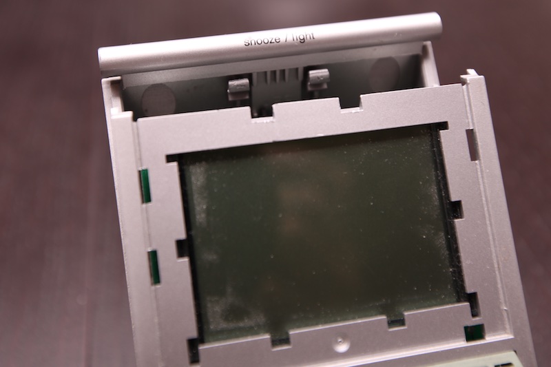 Der Wecker macht nämlich nicht den Eindruck, als ob man ihn gewaltfrei aufbekommen würde. Zunächst muß man die Schraube im Batteriefach lösen. Der Rest sind dann "nur noch" Clips.