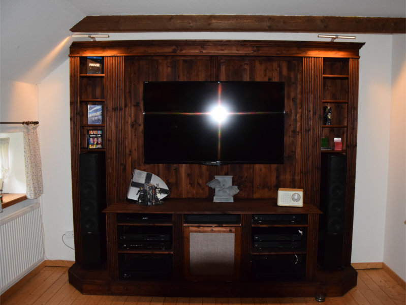 nachdem nun der Schreiner mein TV Zimmer fertig hat, anbei auch hier ein "kleiner" Eindruck.