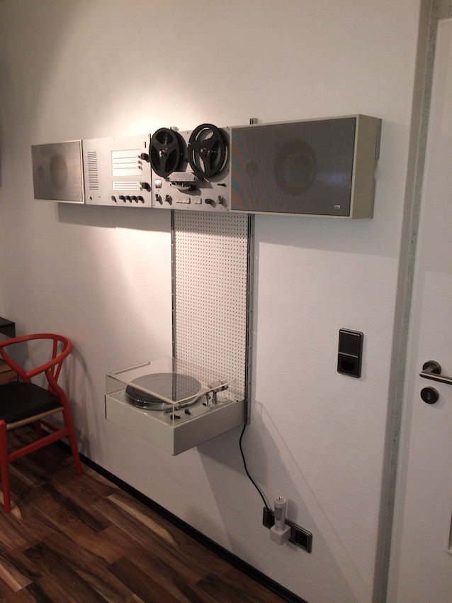 bei Anordnung habe ich mich natürlich an der Anlage im Arbeitszimmer eines Dieter R. in Kronberg orientiert, meine kreative Leistung besteht nur im Weglassen eines Tablars beim Plattenspieler und der zusätzlichen Montage der weißen Lochplatte zwischen den langen Schienen. Diese Platte hat, neben der Optik, der Vorteil, daß sich die Kabel äußerst einfach und unsichtbar dahinter verlegen lassen!