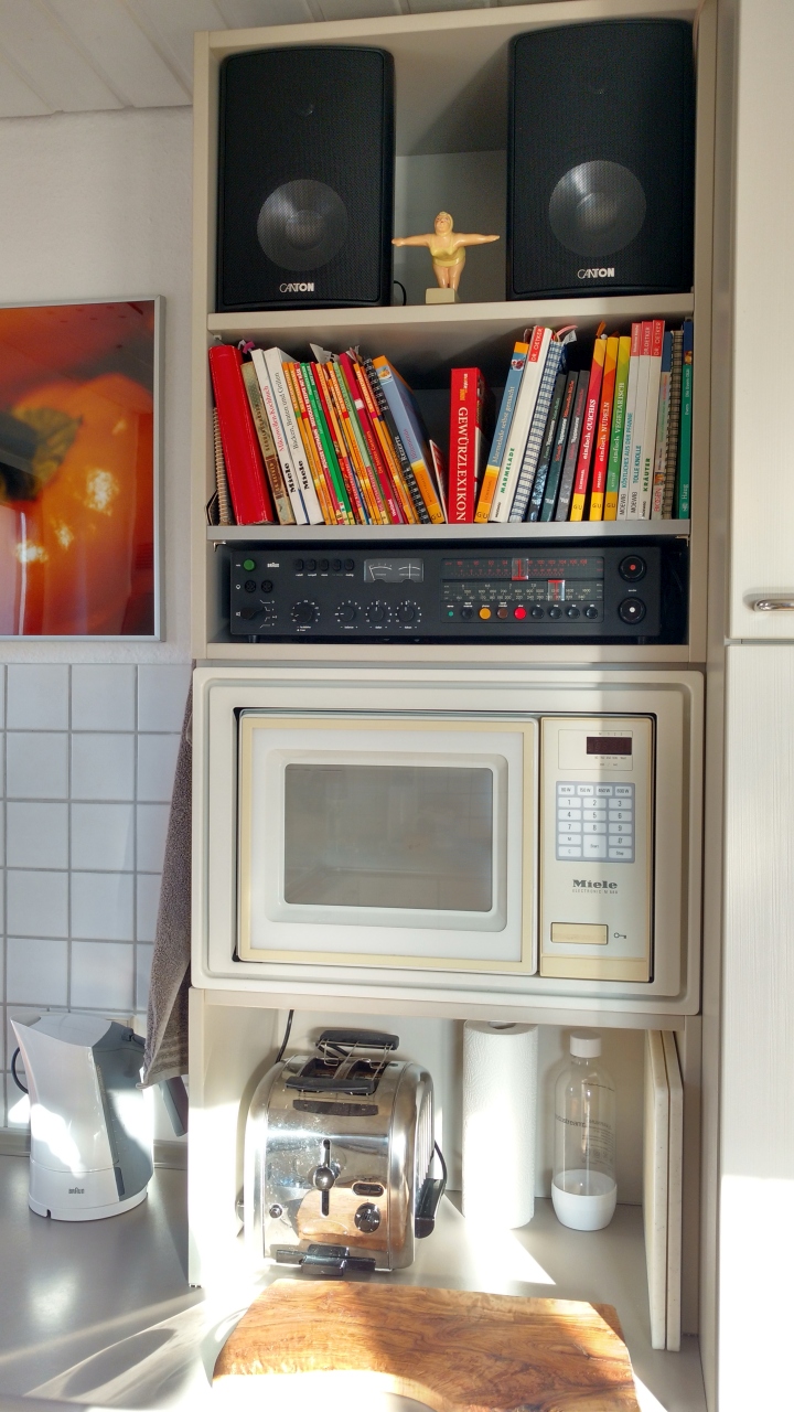 Und in der Küche geht es auch nicht ohne - hier ein regie 520, man verzeihe mir die Canton Boxen, aber passen tun sie perfekt.
