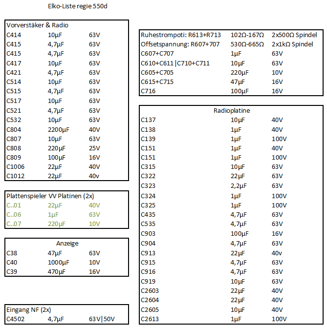 Zu1) Ich habe ganz normale 1µF/50V FC Elko-Typen verbaut, Folie hab ich nicht verwendet und auch nicht gewechselt, nur alle Fraco, Roedersteine und normale Elkos.