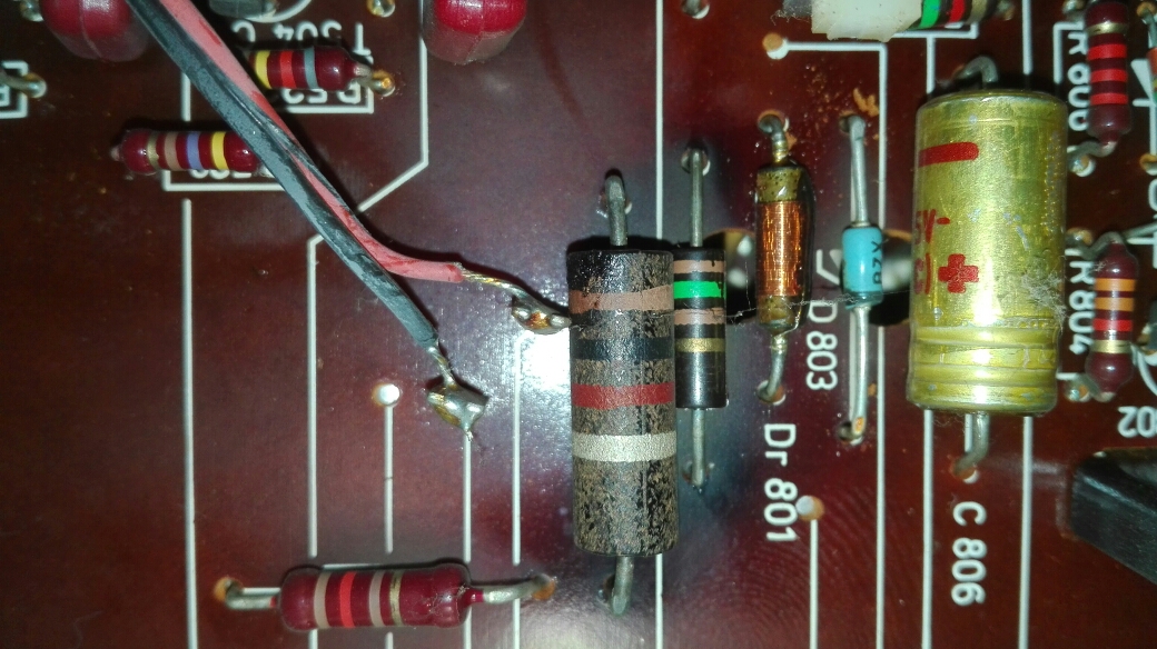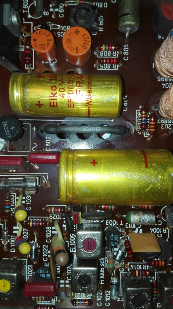 Hallo Andre,ob du das hinbekommst weiss ich nicht,aber versuchen kannst du es.Allerdings ist der Widerstand R802 nicht ohne Grund verblichen.Wenn du Glück hast isses nur der Elko 804 daneben,ich würde aber auch den runden Gleichrichter ersetzen gegen einen B80C1000.Der Widerstand sollte 270 Ohm und 2 Watt Belastbarkeit haben.Elko bei reichelt: https://www.reichelt.de/Elkos-axial/AX- ... OUPID=3142" onclick="window.open(this.href);return false;