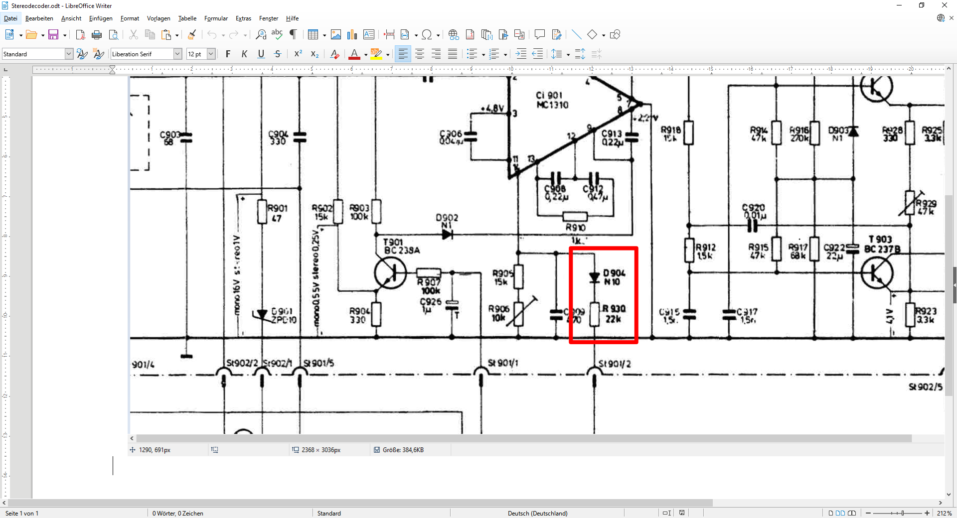 Bereichen kommen auf ST 901/2 15V vom AM Tuner. Diese gingen dann über die Diode und den R 930 an PIN 14: