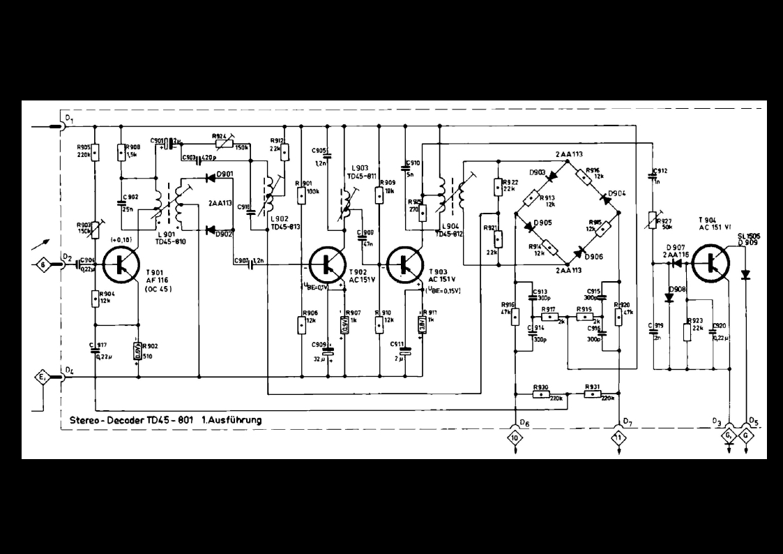 Hier der TD40-801 (gemäß den Serviceunterlagen): Und hier der TD45-801: Was mich interessieren würde: Kam der einfache Decoder vom Typ TD40-801 überhaupt zum Einsatz? Sollte eigentlich schon, nachdem nur dieser in den Serviceunterlagen beschrieben ist. Es wäre vielleicht auch möglich, dass der frühe CET 15, den ich reparierte, ursprünglich ohne Stereodecoder ausgeliefert und dann später mit einem TD151 (=abgespeckter TD45-801) nachgerüstet wurde.