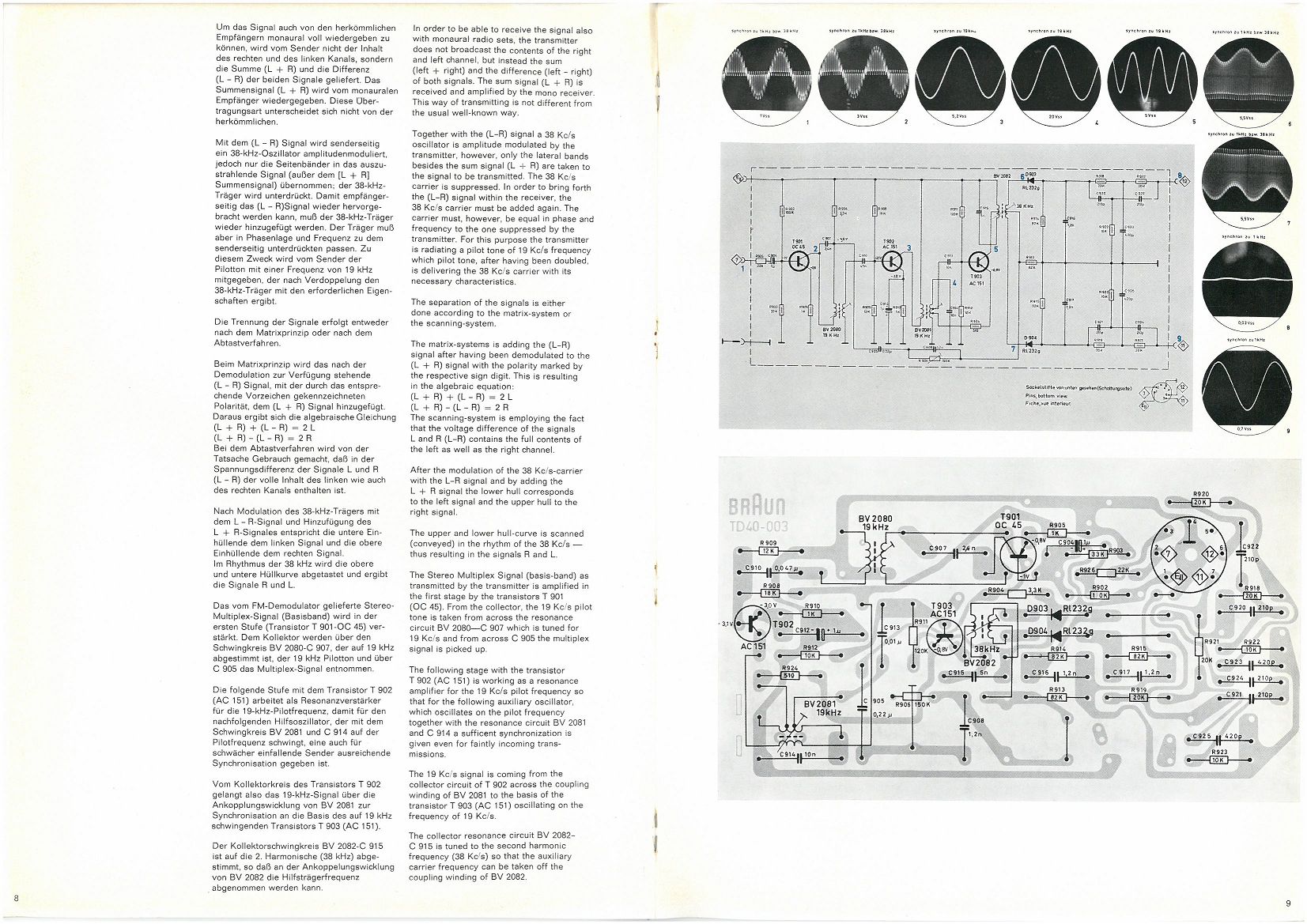 Was aber besonders auffiel, war der Umstand, dass keiner der beiden Tuner mit dem in den Serviceunterlagen (1962-1964) beschriebenen Stereodecoder TD40-801 ausgestattet war. Eingebaut waren jeweils die erste Ausführung des TD45-801, deren Platinen allerdings um die Bauteile für die Ansteuerung des Stereolämpchens abgespeckt waren. Die Typenbezeichnung dieser abgespeckten Version heißt TD151. Die Schaltungen der Decoder TD40-801 und TD45-801 unterscheiden sich komplett voneinander.